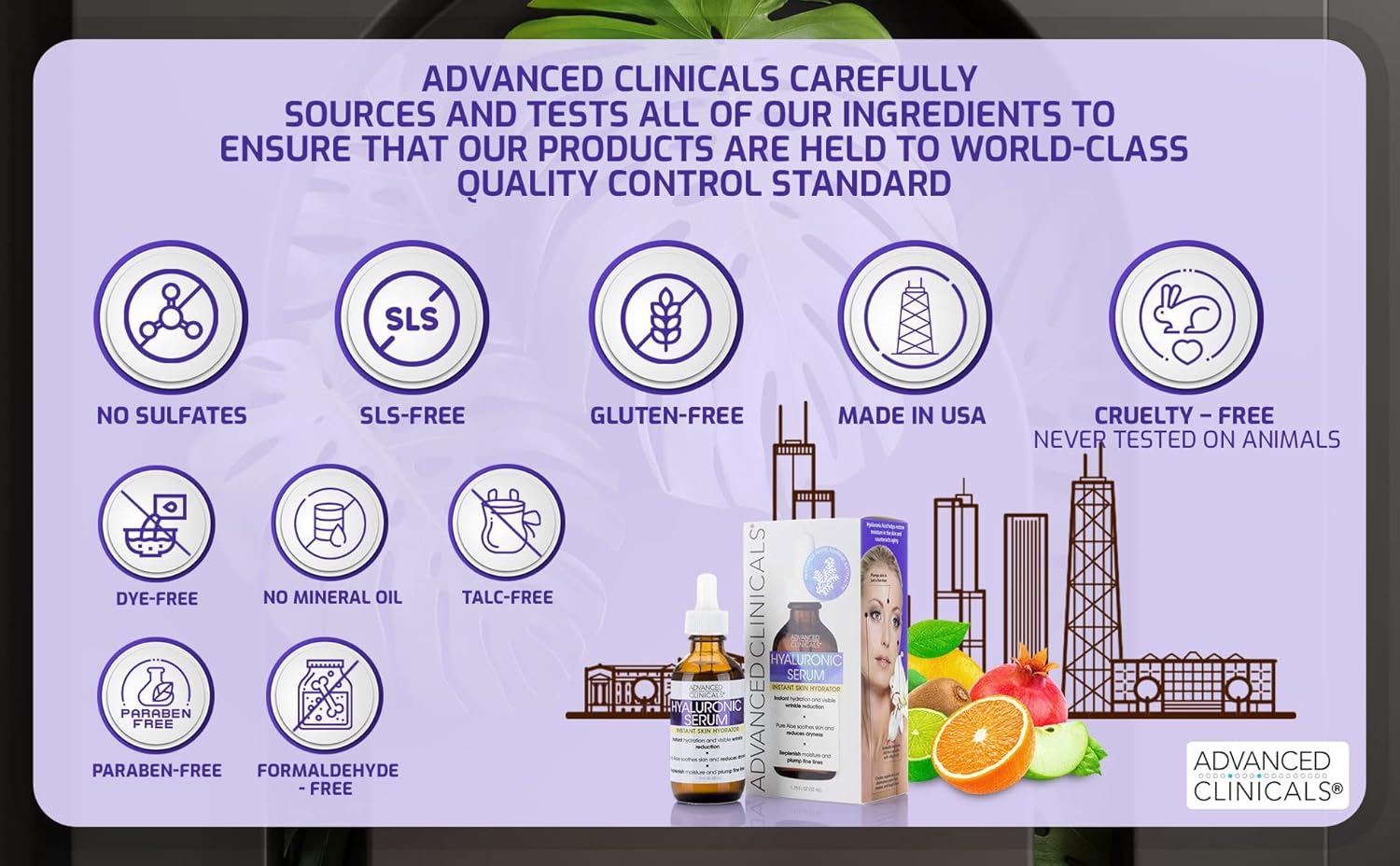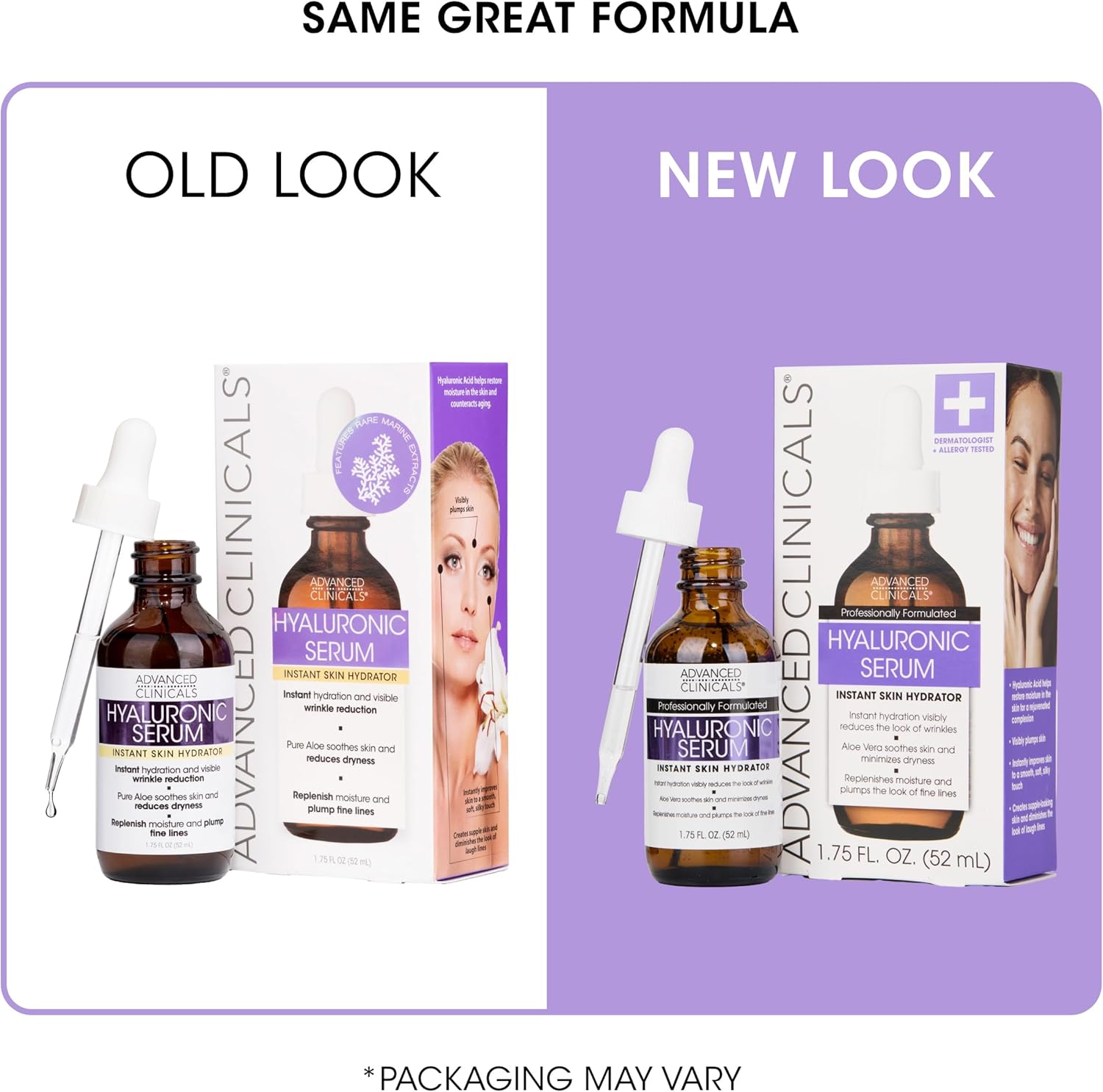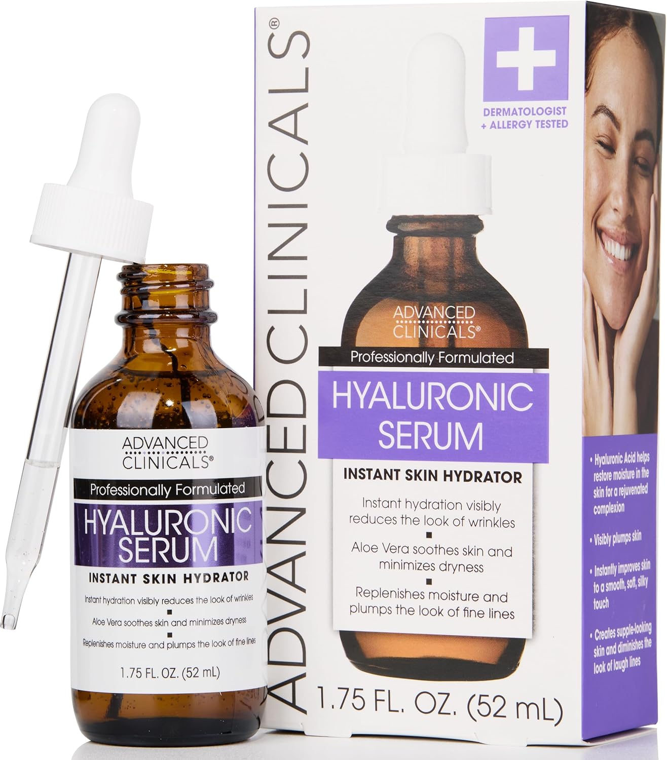 Advanced Clinicals Hyaluronic Acid Face Serum Anti Aging Face Serum Instant Skin Hydrator Plump Fine Lines Wrinkle Reduction 1.75 Ounce Multi
